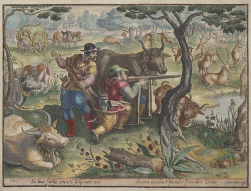 Stradanus/ Straet Sic capiunt cautes per summa cacumina feles. 23 Arberis, aut canibus iuga per sublimia montis. 1665 340